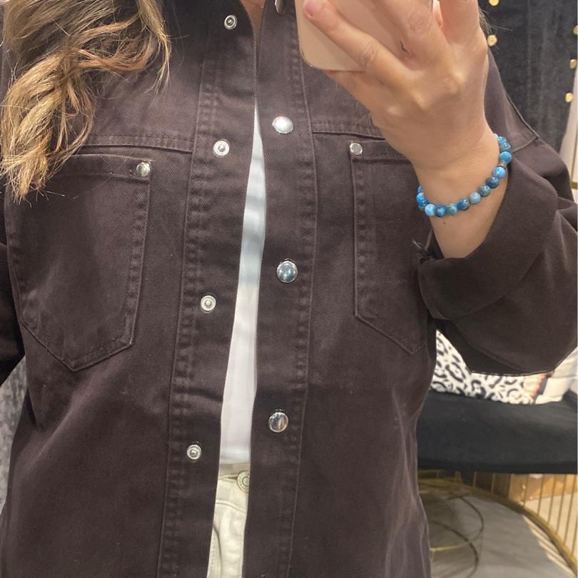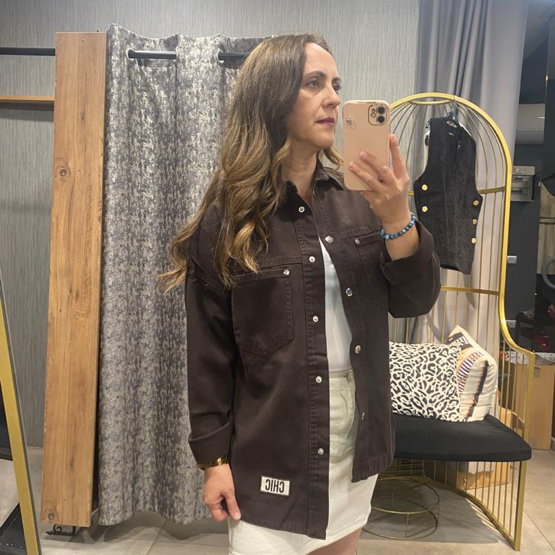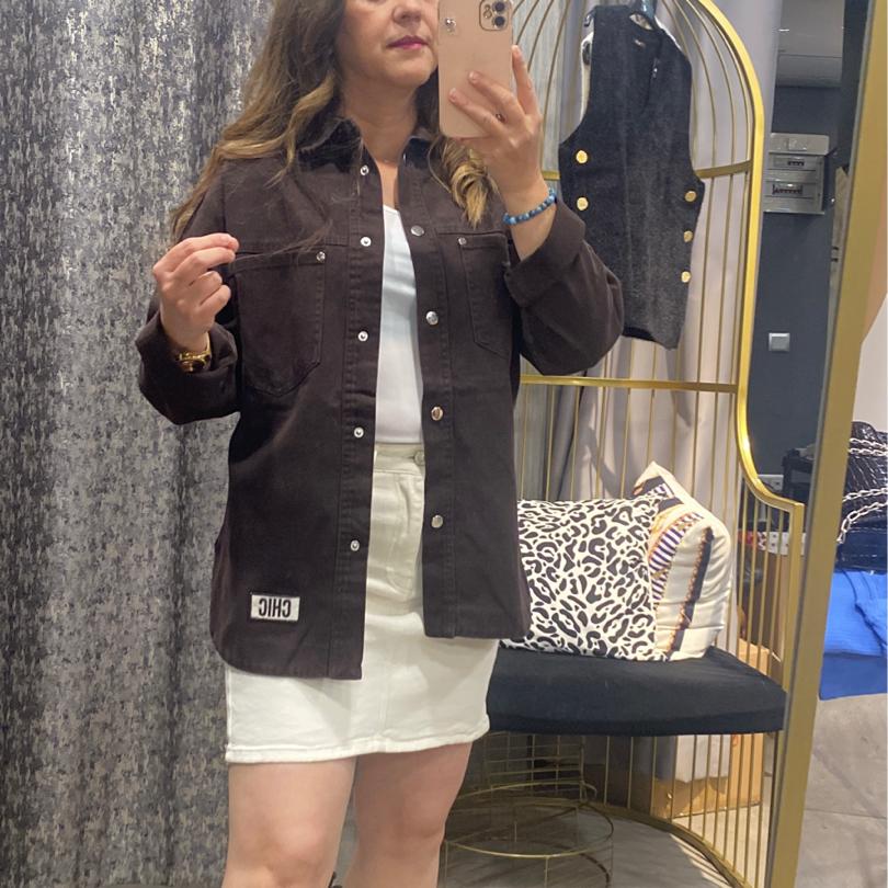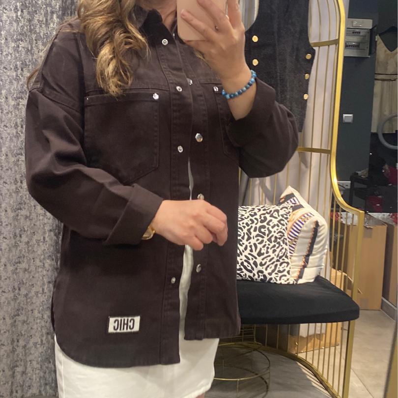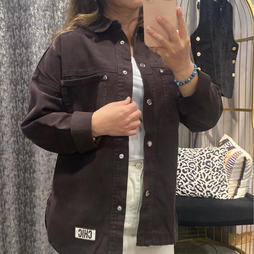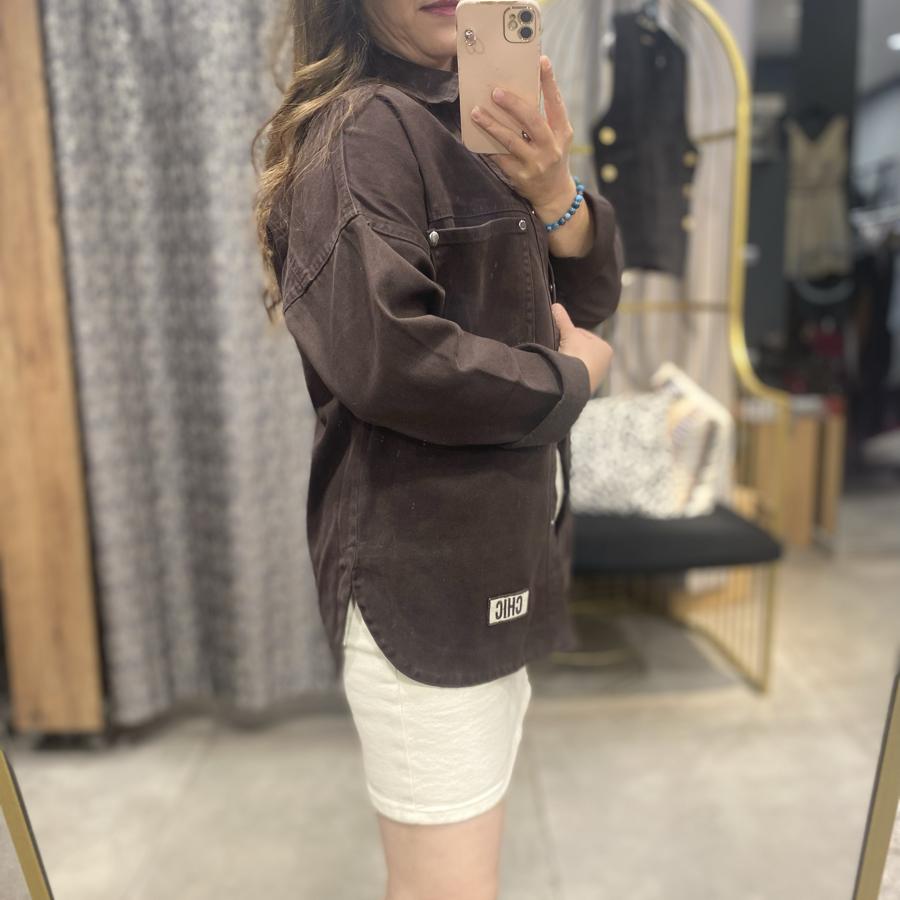 Arma Detaylı Kahverengi Kot Gömlek
