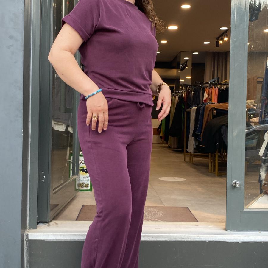 Bisiklet Yaka Pike Modal bordo Giy Çık Takım