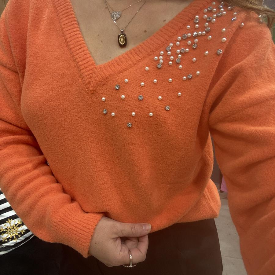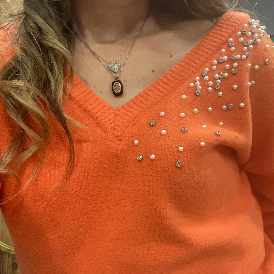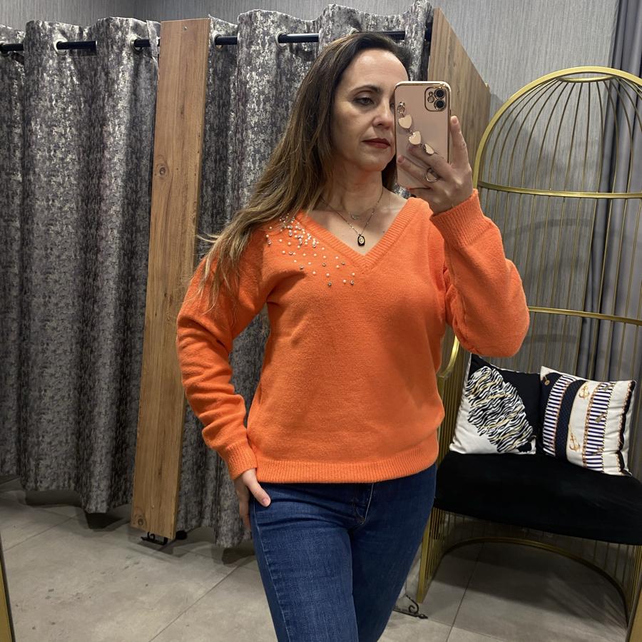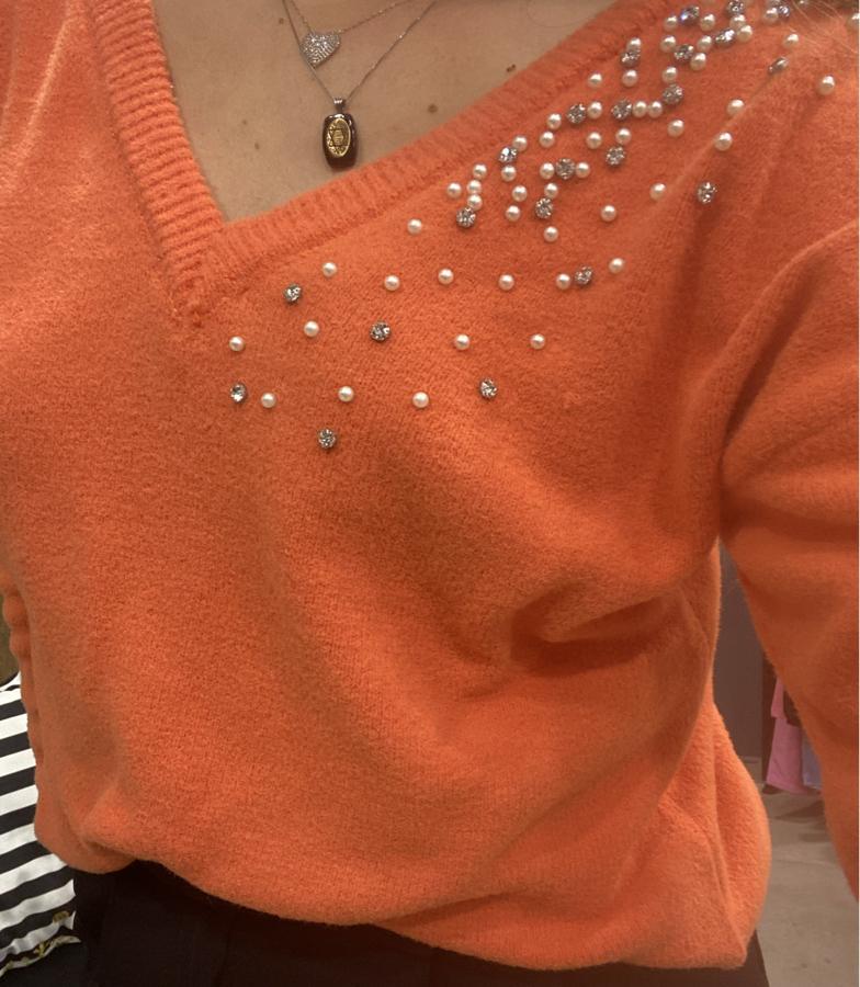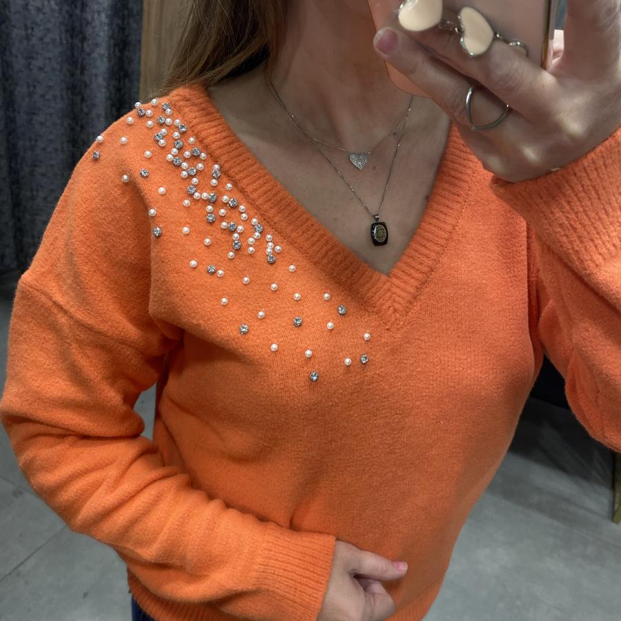 İnci Detaylı Ön Ve Arka V Yaka Yumuş Kazak