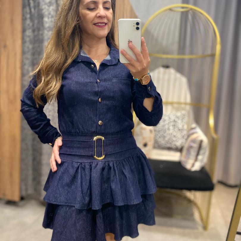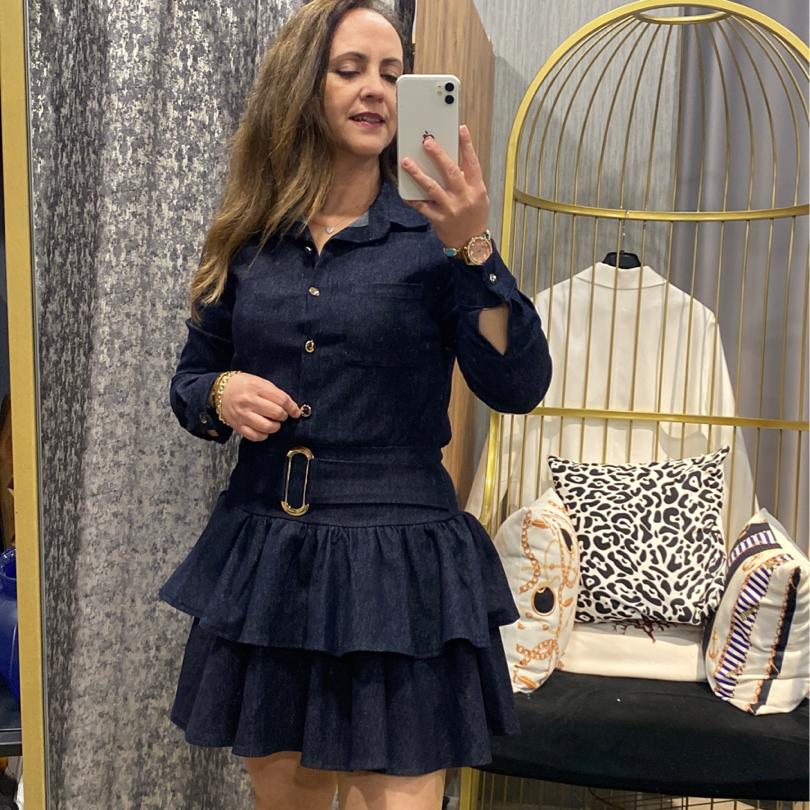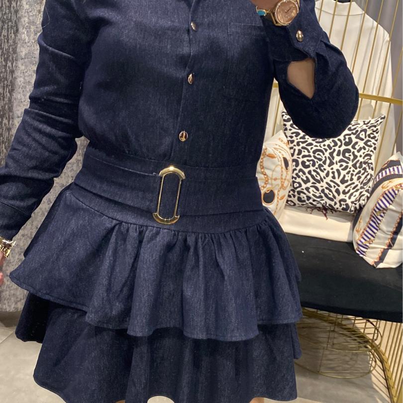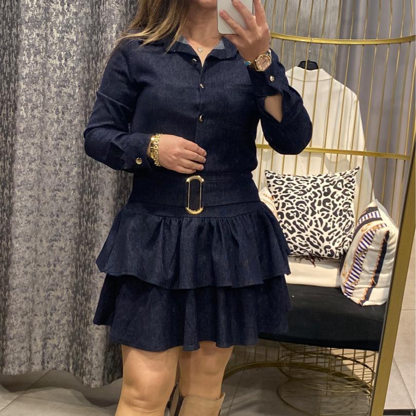 Likralı Mini Katlı Lacivert Kot Elbise