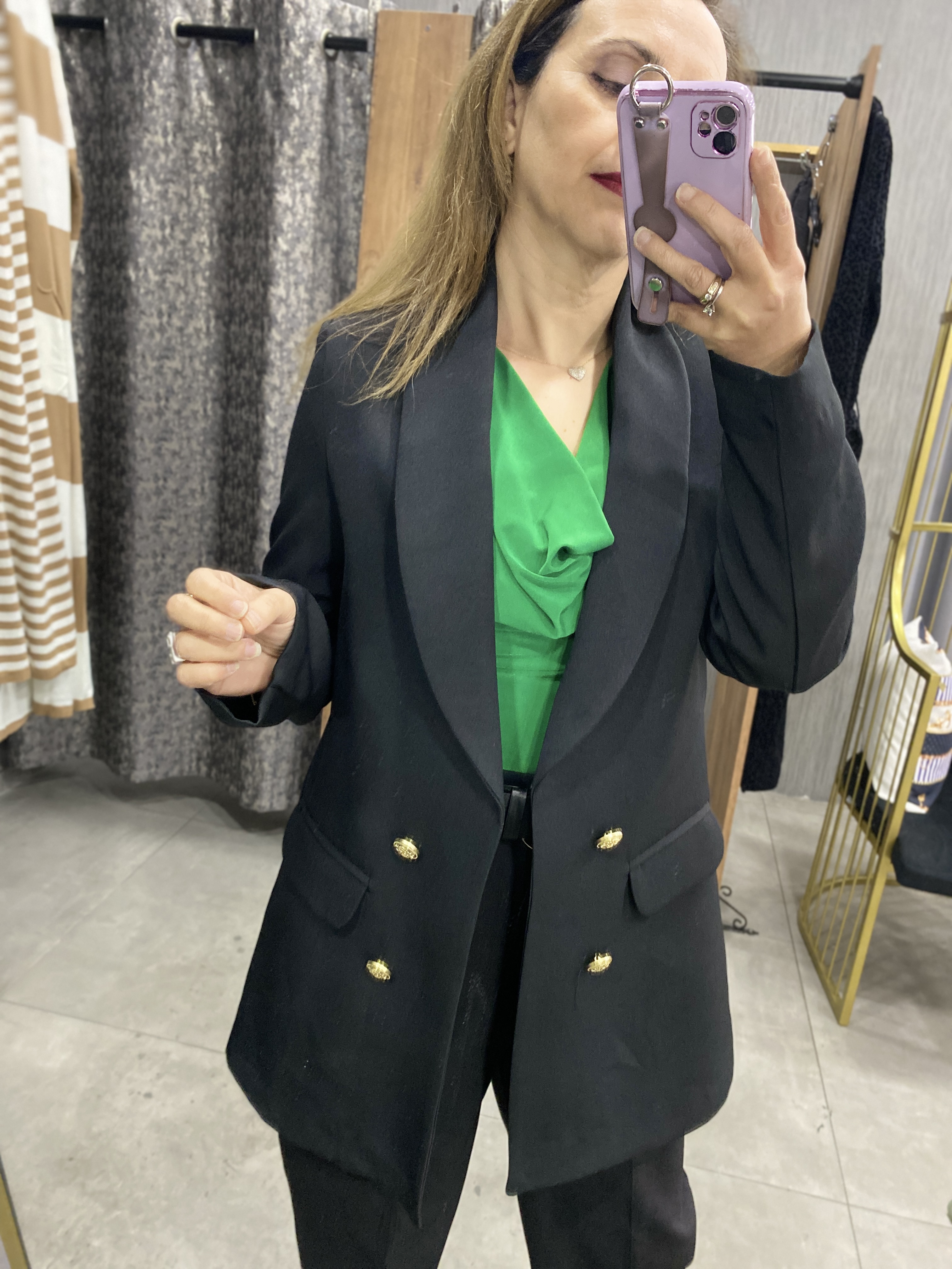 Siyah Düğmeli Astarlı Kadın Blazer Ceket