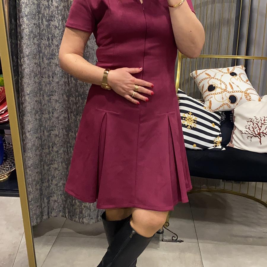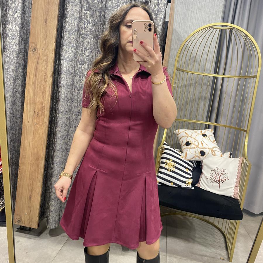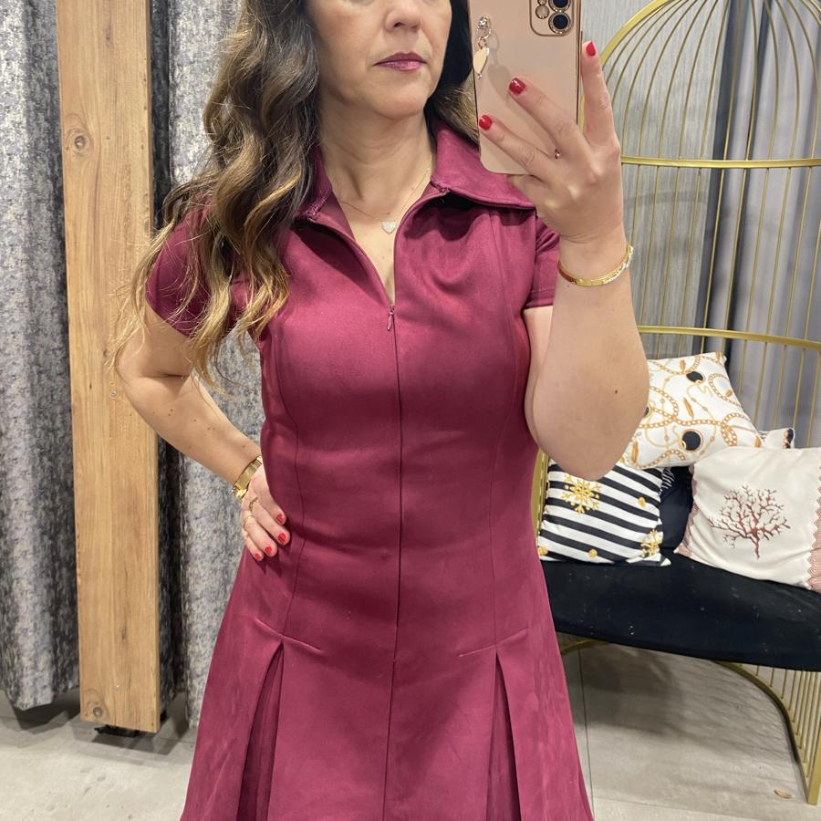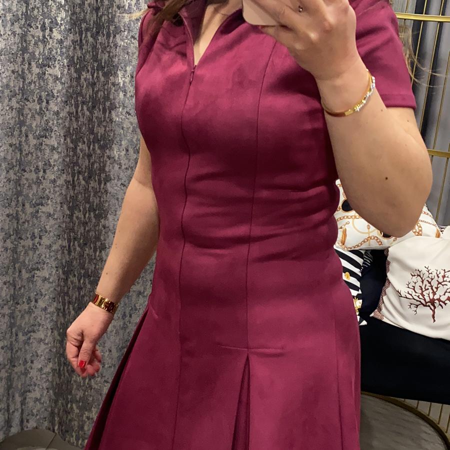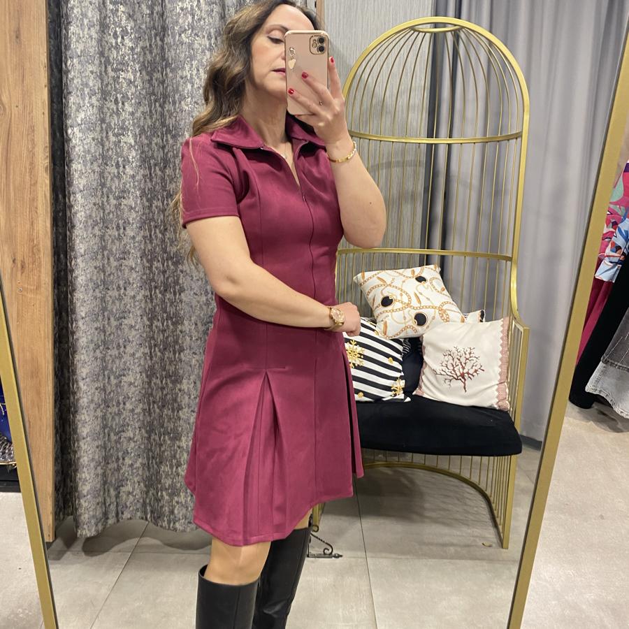 Süet Yakalı Fermuarlı Kısa Kollu Elbise